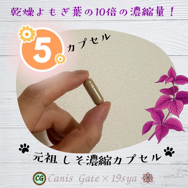 【商品名】 元祖しそ濃縮カプセル(1袋/5粒入り) 【商品説明】 しそは昔から“和のハーブ”として親しまれ、体調を整える植物として重宝されてきました。 特に、女性の健やかな毎日をサポートしてくれるのが特徴です。 乾燥よもぎ蒸し葉の約10倍濃縮。しその力で体と心を温め、リラックスをサポートします。自宅や職場、サロンで手軽に温活ケアを。 【使用方法】 蒸しケア、香りケア、入浴剤、アロマポット、スチーム椅子などに入れるだけ。片付け不要で簡単。 【こんな方におすすめ】 ✓冷えやむくみが気になる方 ✓肌荒れや乾燥対策をしたい方 ✓更年期・PMSなど女性特有の悩みを持つ方 ✓リラックスやストレスケアを求める方 ✓お子さんいらっしゃる家庭でもご使用いただけます 【しそ温活・効果効能】 冷え対策/美肌ケア/更年期サポート/胃腸ケア/生理痛緩和/ストレス緩和/血行促進/花粉症対策/PMS緩和/アレルギー緩和/抗酸化作用 【注意事項】 ※本品は食用ではありません。 ※高温多湿を避け、冷暗所に保管。 ※今季限定のため、品切れの場合は次回の予約待ちとなります。 製造元:Canis Gate×19sya 原材料:国産大葉・紫蘇(乾燥粉末)